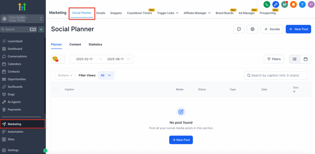 Go to the Marketing section in your SalesKaki dashboard and select Social Planner.