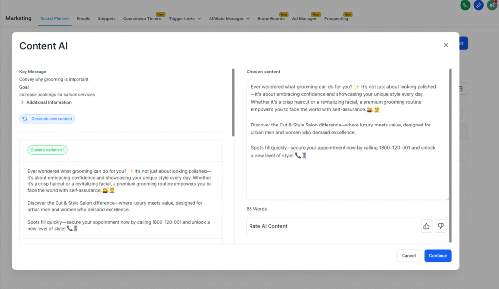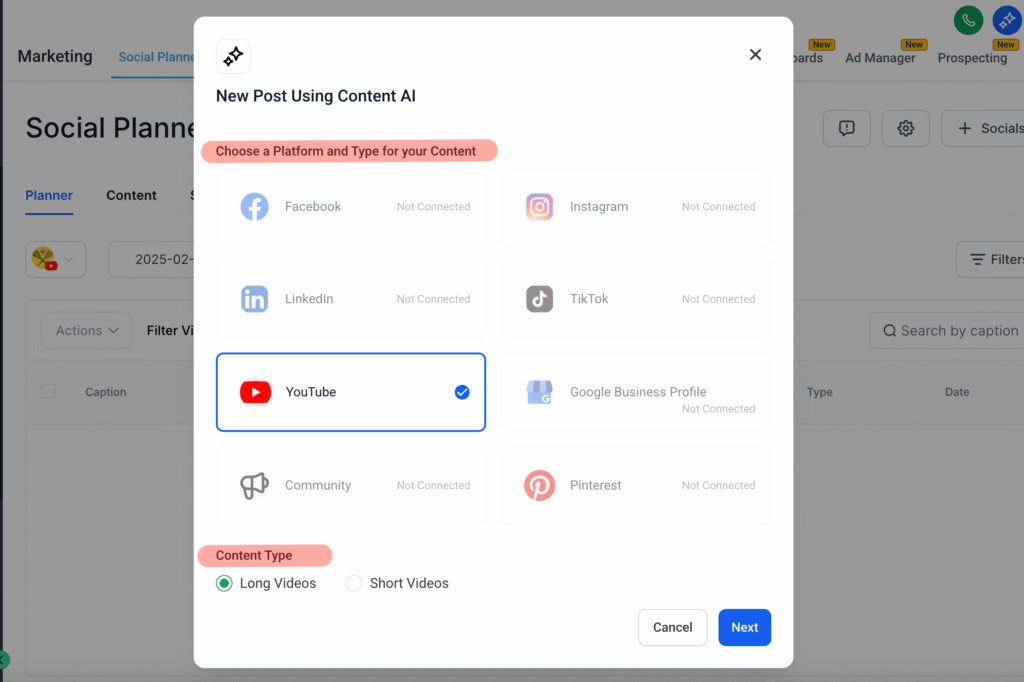 Setting up and using the new guided Content AI questions in Social Planner is simple and ensures your posts are optimized for each platform.