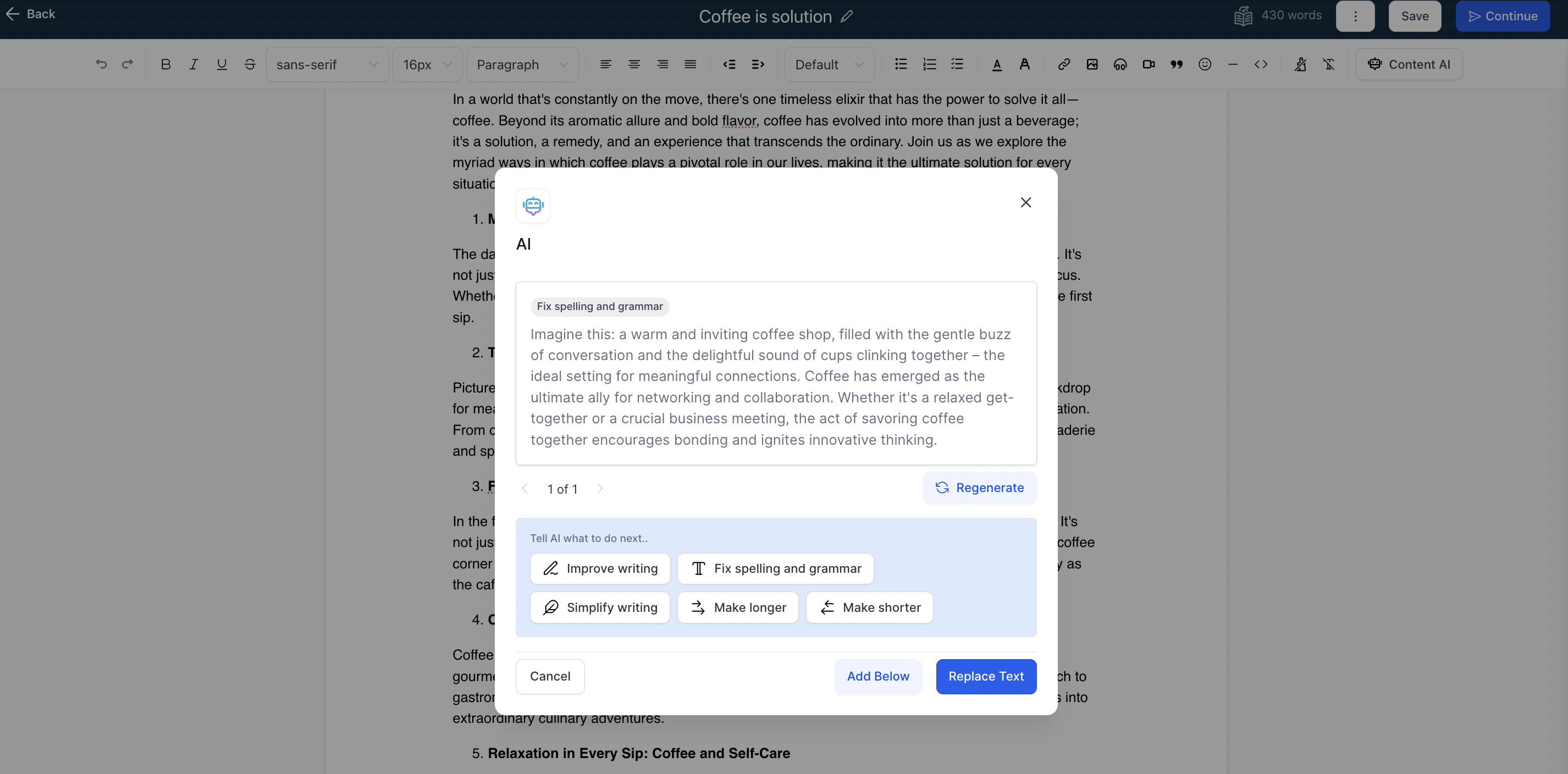 6. You can add the content below the selected or considered text for quick action or you can replace the text too.