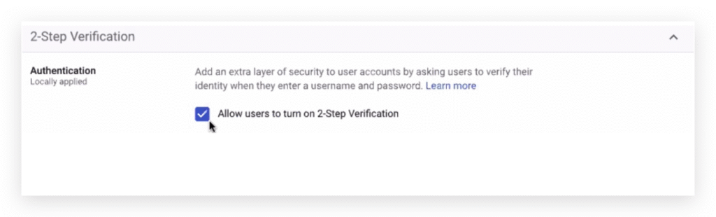 Ensure the option to Allow users to turn on 2-Step Verification is enabled.